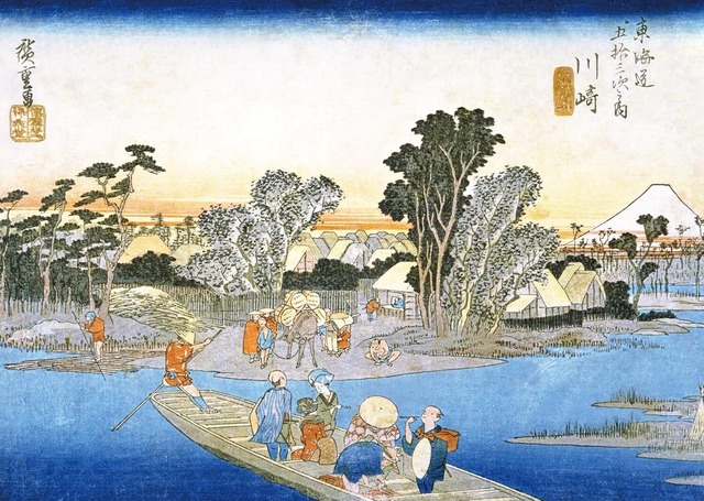歌川広重。川崎 六郷渡舟を印刷屋さんが元画像をレタッチし綺麗に印刷したジグソーパズル。 サイズ:約A3サイズ(420mm×297mm) ・ピース数:300ピース ・表面の紙質:上質紙