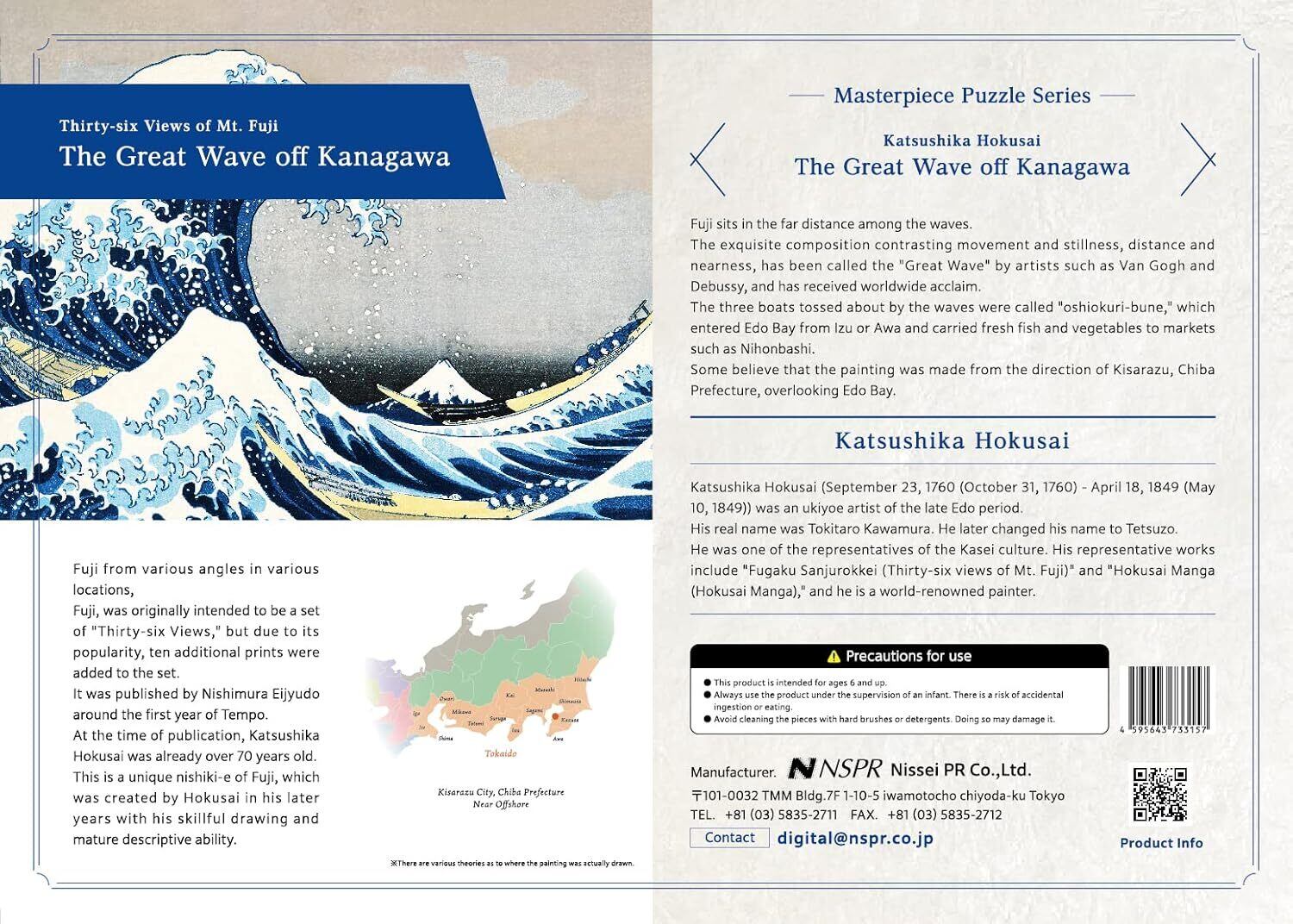 浮世絵の原画を印刷会社が汚れ除去などのレタッチを施し綺麗に印刷したジグソーパズル。