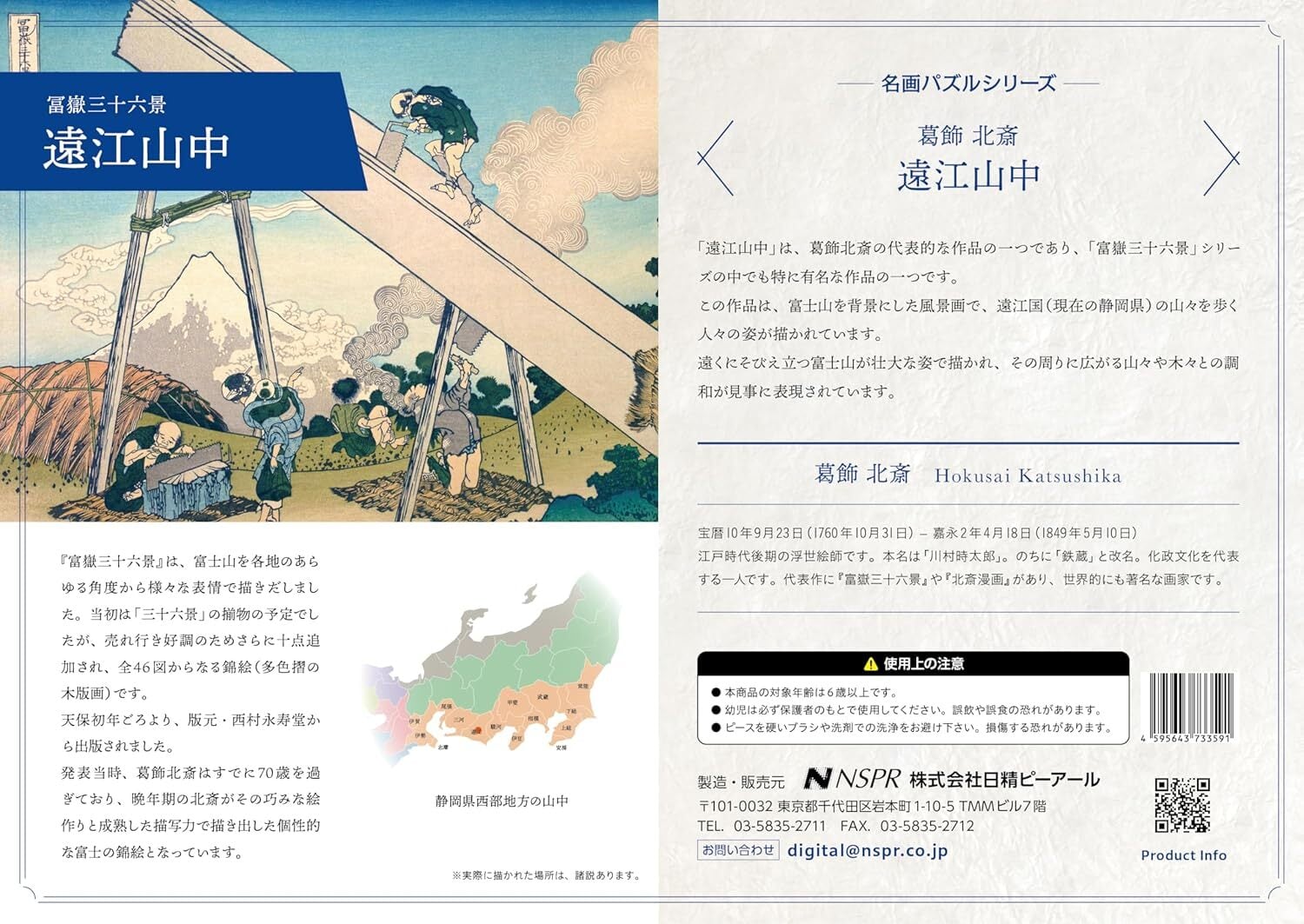 葛飾北斎。遠江山中を印刷屋さんが元画像をレタッチし綺麗に印刷したジグソーパズル。