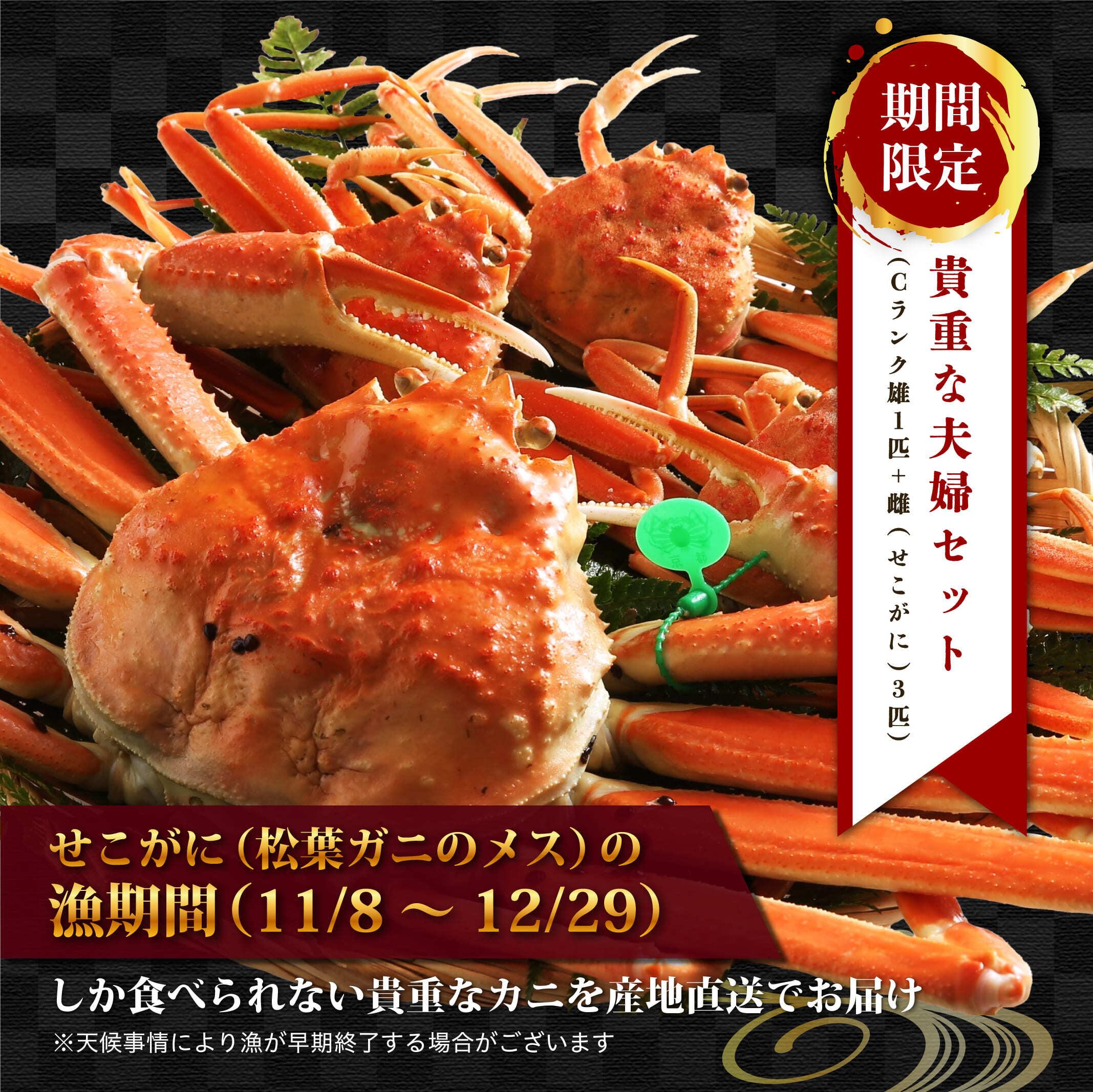 【予約販売】\11/6(木)解禁日/【 Cランク 】間人(たいざ)がに Cランク雄1匹+雌(せこがに)3匹《 ランク満足度保証 》未冷凍 そのまま食べられる!